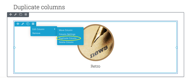 When you duplicate a column, an identical column with all the column settings and any modules it contains is duplicated to the right of the current column, as in the following example.