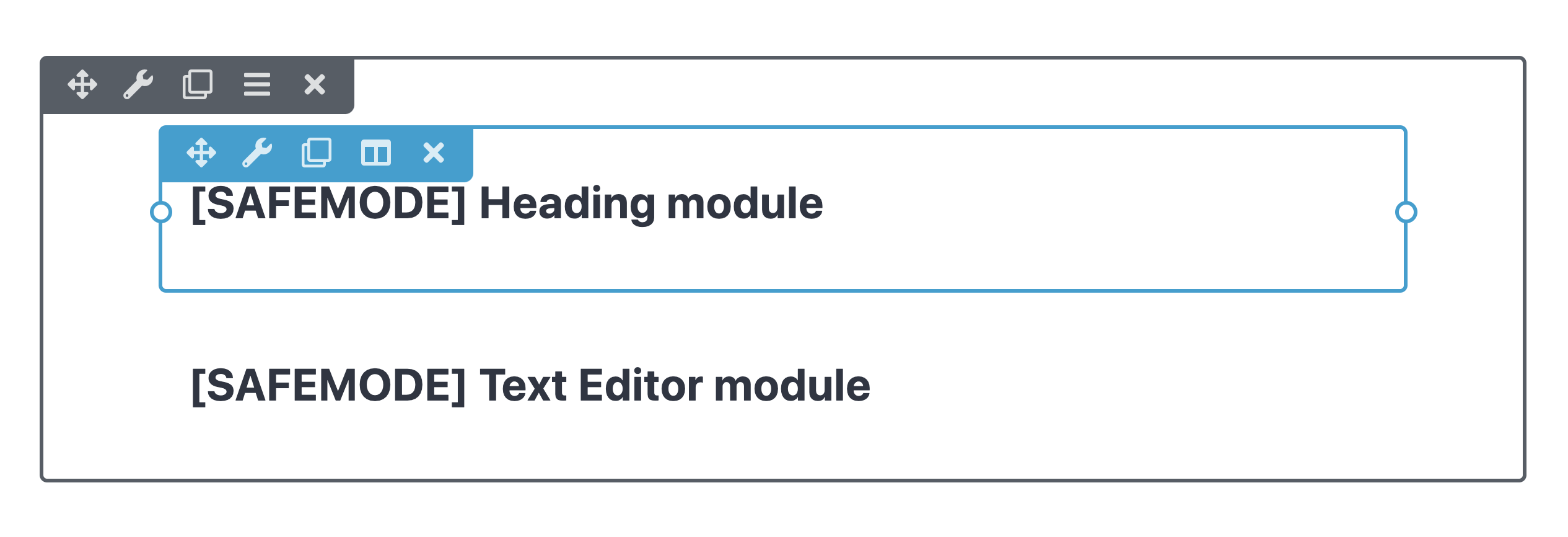 There's an easy way to troubleshoot the problem. You can open the page in Safe Mode, then fix or remove the module that contains the offending code. When you open the page in Safe Mode, the page is opened in Beaver Builder for editing as usual, but no HTML, JavaScript, or CSS is rendered. Instead, there's a [SAFEMODE] message and identification of each module in the layout, as shown in the following screenshot.