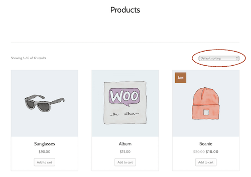 Tip: To change the default sort order in this box, go to Customize > WooCommerce > Product catalog > Default product sorting.