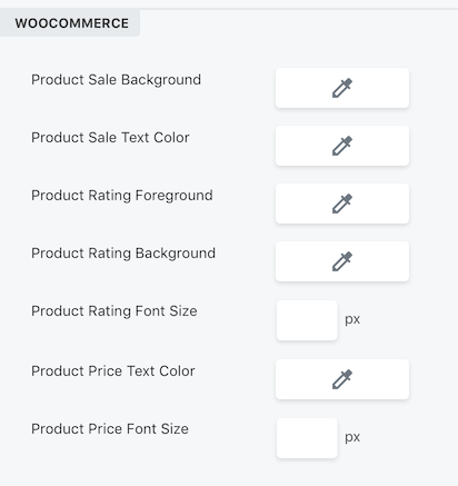 The Style tab also has a special WooCommerce section with special style settings, as shown in this screenshot.