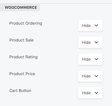 On the Layout tab, there's a special WooCommerce section that lets you choose whether to show or hide particular product features, as shown in the following screenshot and described below.