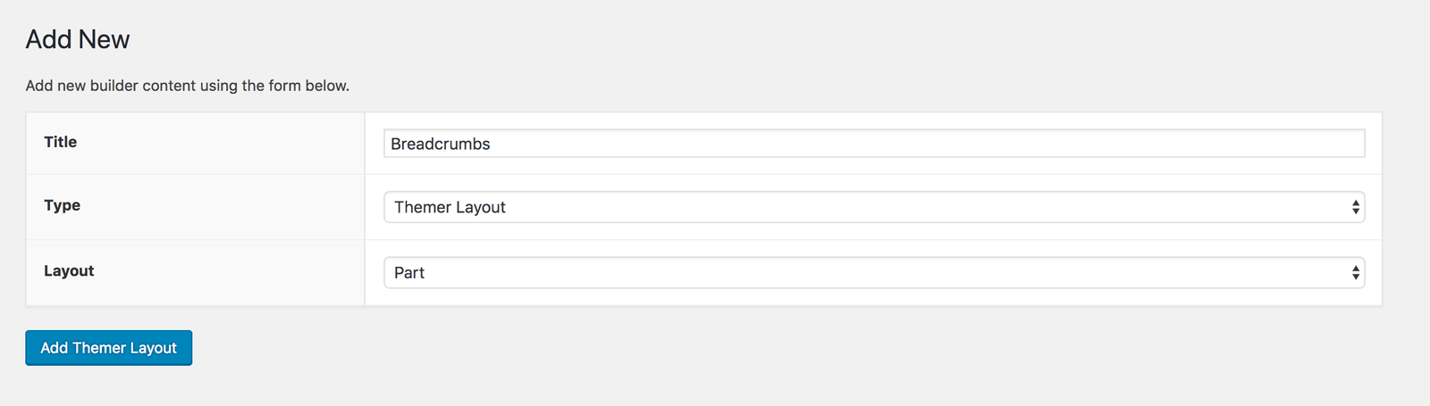 3. Create a new Themer layout, and for Layout choose Part.